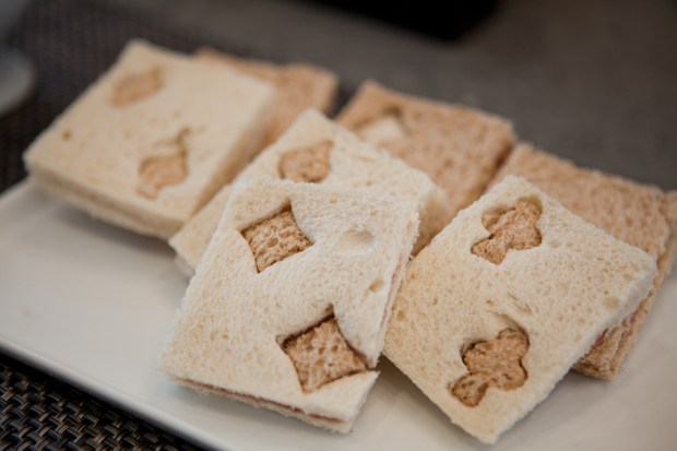 We made “playing card” tea sandwiches using wheat and white bread using mini cookie cutters and had apple juice “tea.”