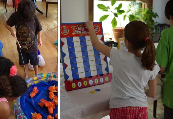 I toyed with the idea of another punch box but decided to make a fishing game using crepe paper fish instead since it fit better with the county fair theme. And that’s how we ended the party.