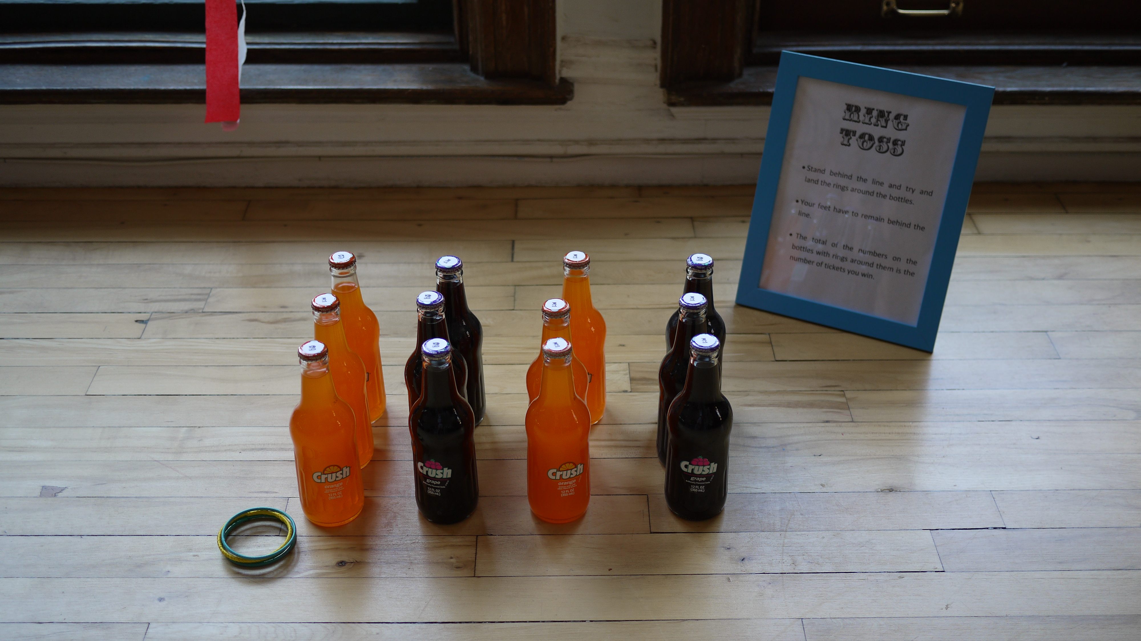 Soda bottles, stickers and bangles made up the Ring Toss.