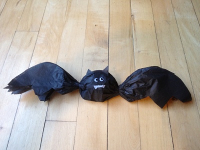This cute tissue paper bat is actually filled with party favors.You can make them as big as you like.