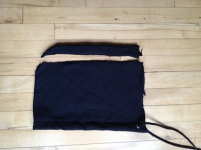 Take the hood and sew the bottom shut to make a tube.