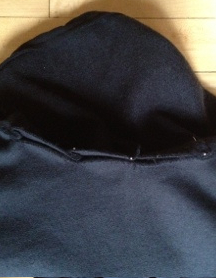 I love sweatshirts because they’re comfortable and they have a big pocket. I’m not so keen on the hood and how casual they look. So, I decided to change my hoodie to a cowl neck. The first step is the cut off the hood. Either use a seam ripper or, if you’re impatient, just cut along the seam.