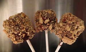 Melted chocolate, crushed graham crackers and marshmallows are all you need for the tasty treats. We tried them without sticks, too. A bit trickier to dip, so we ended up covered the entire marshmallow.