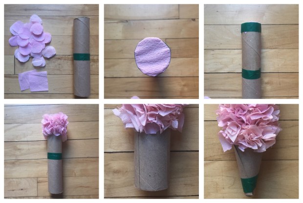 I taped together two toilet paper tubes as the base and then covered one end with tissue paper.