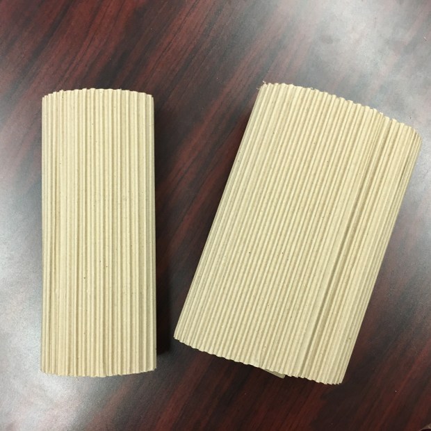 Hot glue the rectangles into tubes. Slightly stagger the size so the tubes are able to nestle into each other.