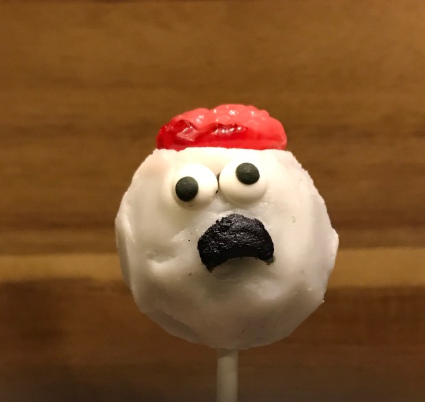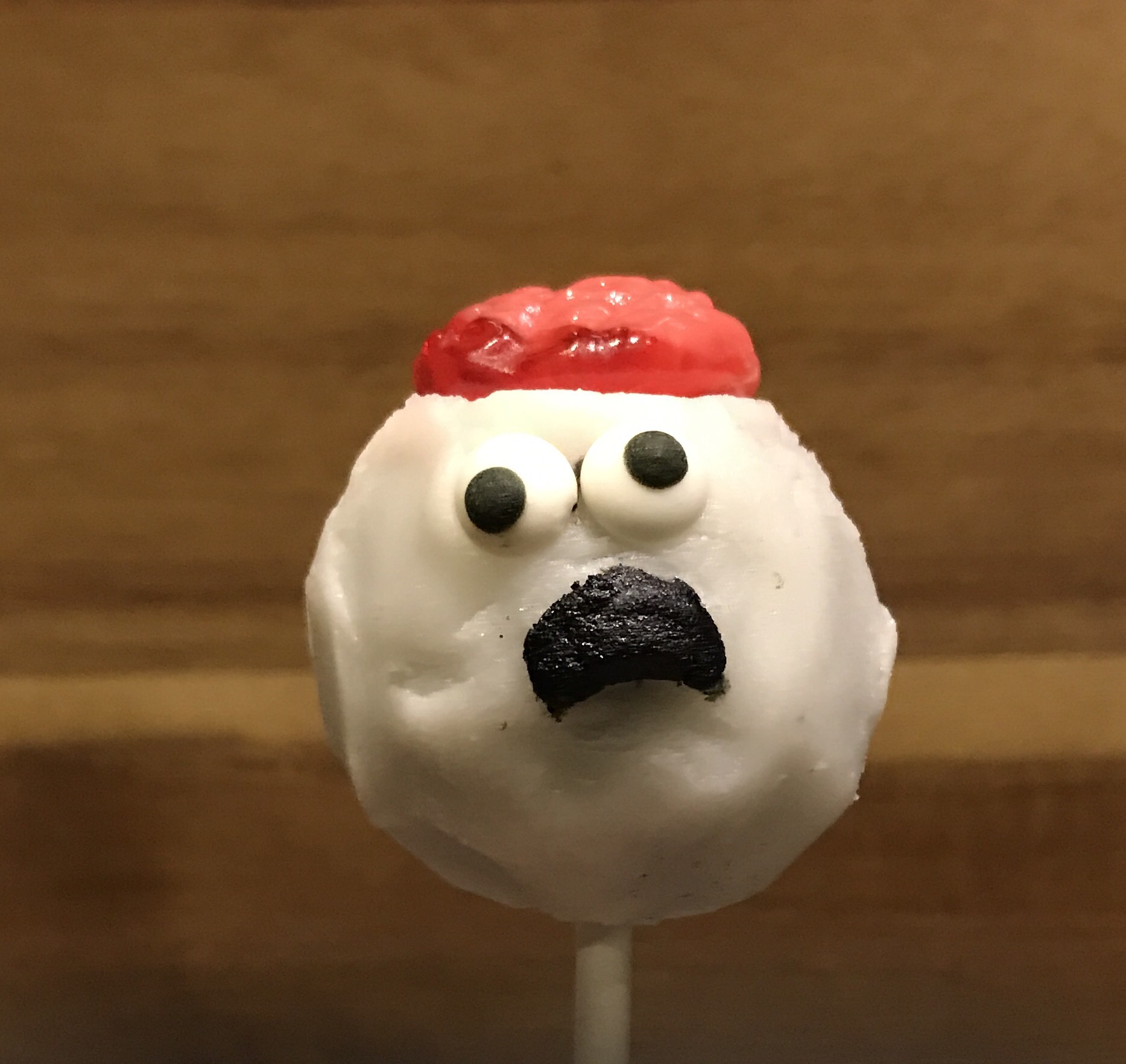 While picking up gummy teeth for vampire donuts, I came across gummy brains. The looked just about the right size for the top of cake pops. Happy Halloween!