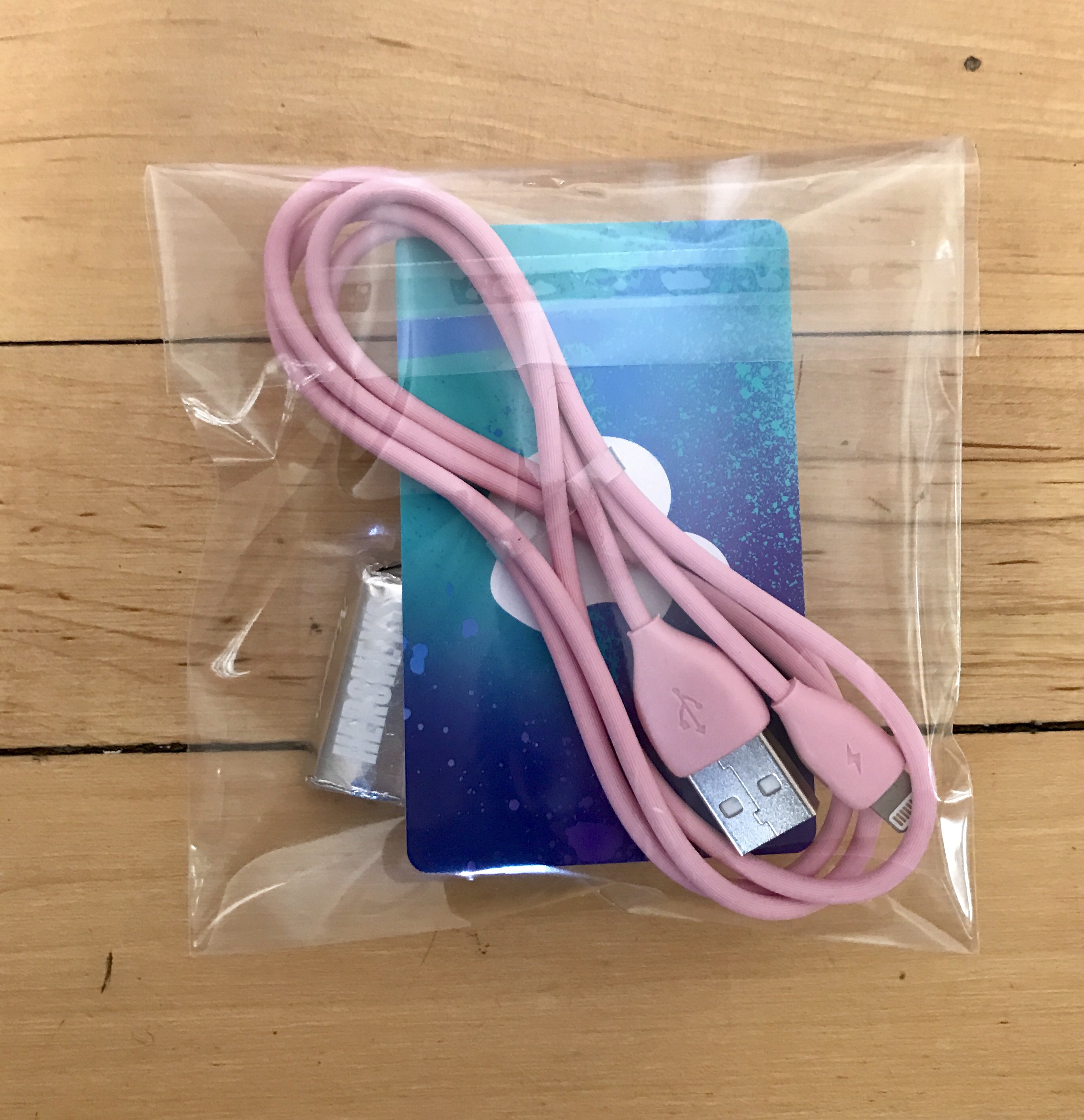 An iTunes gift card and a charging cable are a great combo. Throw in some holiday candy to fill it out and you have a great gift.