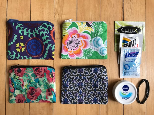 These small pouches are just the right size to hold what you might need: lotion, hand wipes, spot remover and more. Perfect for gifting or just to have on hand to toss in you bag.