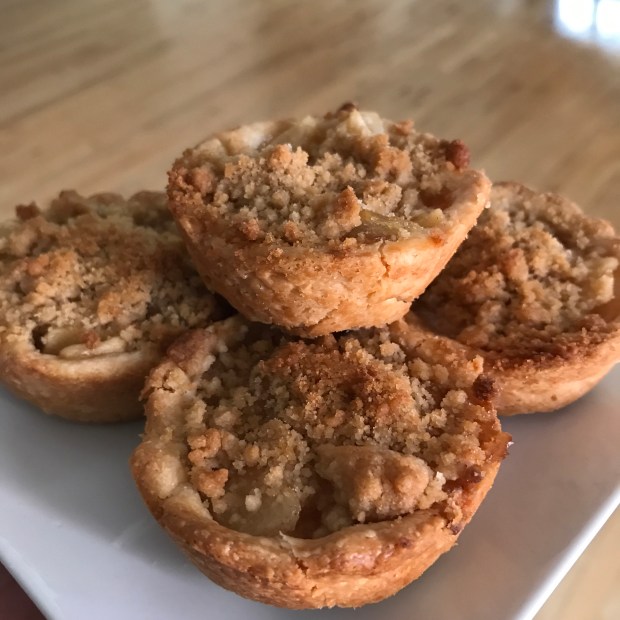 I usually make apple crumble mini pies since I usually have a ton of apples from apple picking. This year, I decided to try it with pears I bought at the farmers’ market.