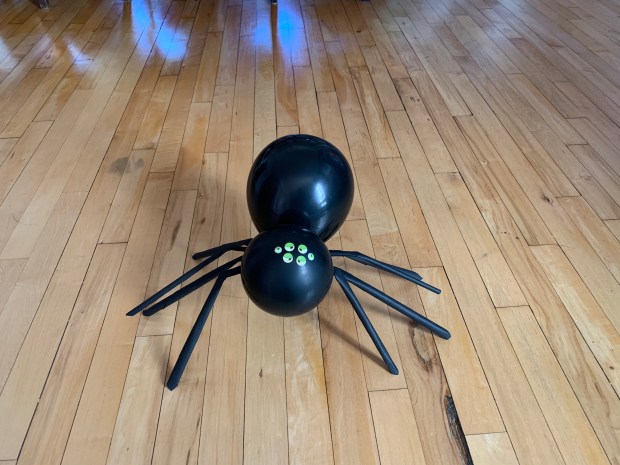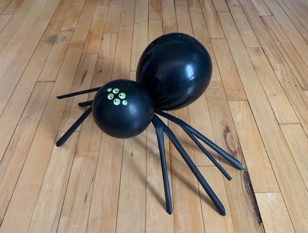 Here’s a quick and easy Halloween decoration. You just need balloons, construction paper, tape and eyes.
