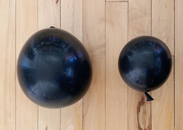 Blow up one balloon as large as you want. Blow up the second one so it’s a little smaller.