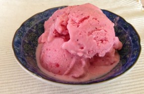 Chow.com has a super easy recipe for peach frozen yogurt: frozen peaches, yogurt and honey. I tried it with strawberries and it turned out just as well