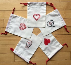 Since I’m trying to use up the stash of small drawstring bags, I thought I’d make some fun treat bags for Valentine’s Day. I just replaced the drawstring with red ribbon. You could… Continue reading